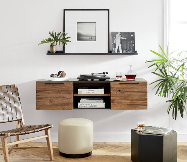 #small space furniture crate barrel, #crate barrel floating shelves shelf crate barrel, #wall mounted rigby media console tv stands media, #rigby small floating media console crate barrel